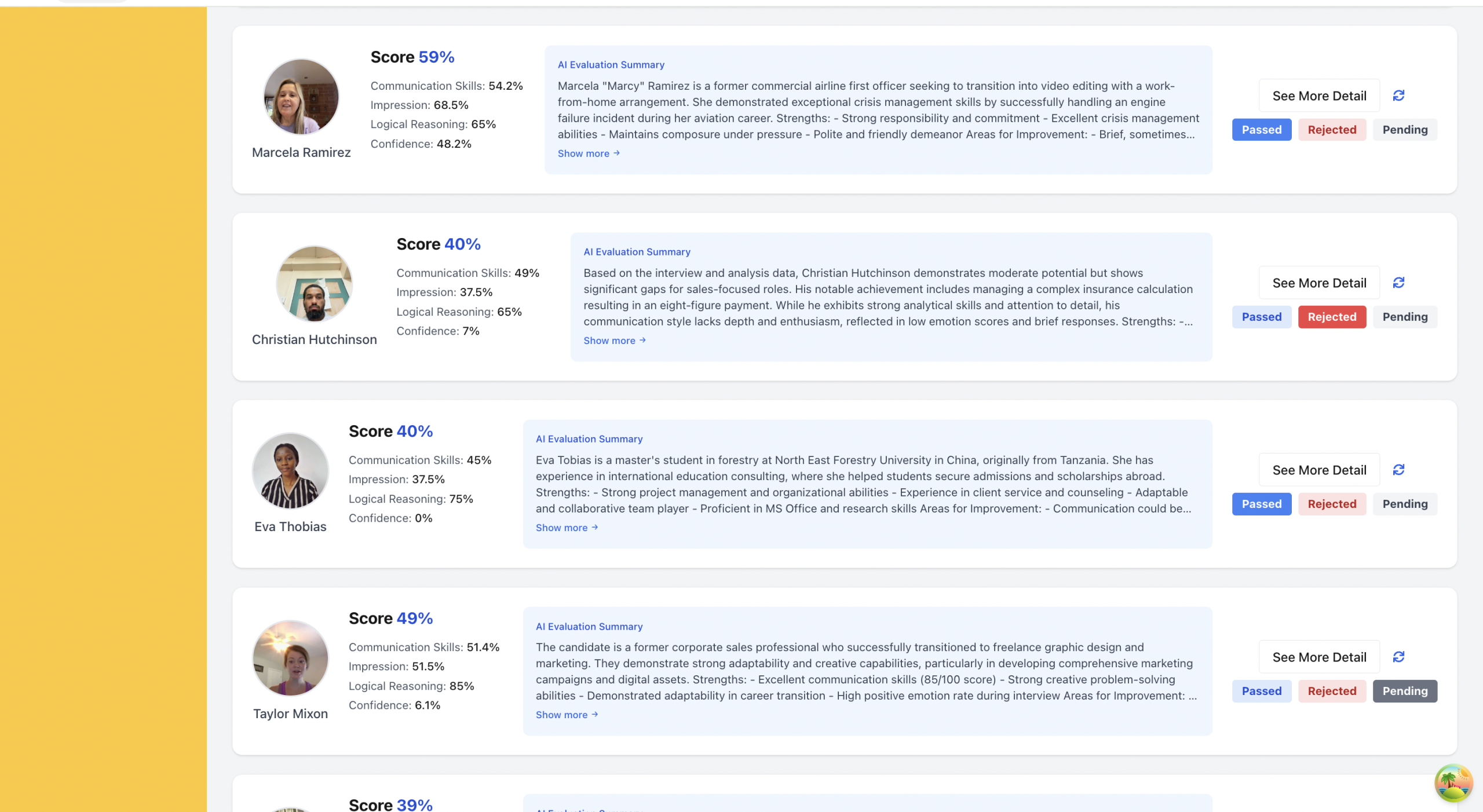 Advanced AI scoring and matching system that ranks candidates based on job fit and interview performance