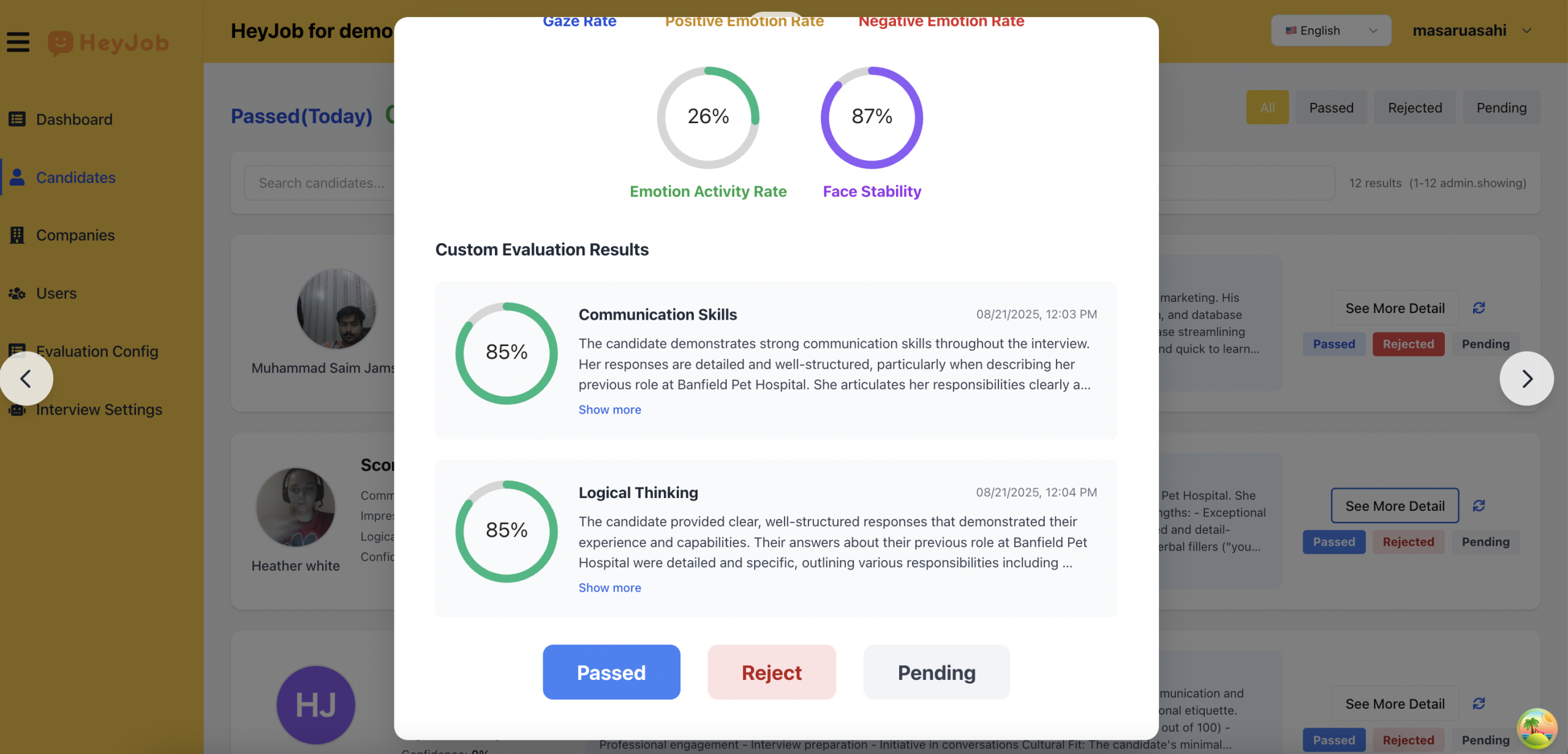 Our AI interviews use a combination of natural language processing, image recognition, and facial expression analysis to evaluate candidate responses. You can customize the prompts, adjust scoring criteria, and fine-tune the interview process to align with your hiring goals.